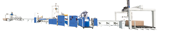 This production line is mainly used for high-strength composite of plates of different materials. Its adhesive has the characteristics of high adhesion, cold resistance, high temperature resistance, waterproof and environmental protection. Fully automatic production, tracking and cutting, hydraulic back pressure, the finished product can achieve the bonding effect in an instant. Applicable products include high gloss cabinet, composite floor, aluminum-plastic board, fireproof board, melamine board, etc.